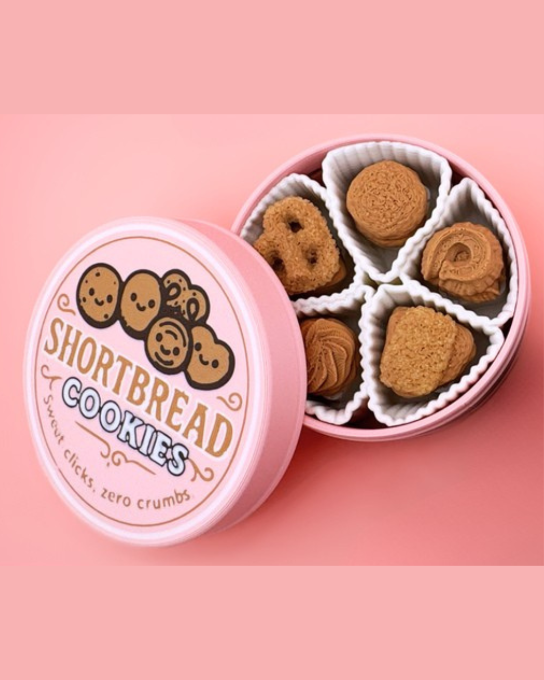 A delightful set of 3D-printed shortbread cookies packed inside a cute collectible tin 🍪💖